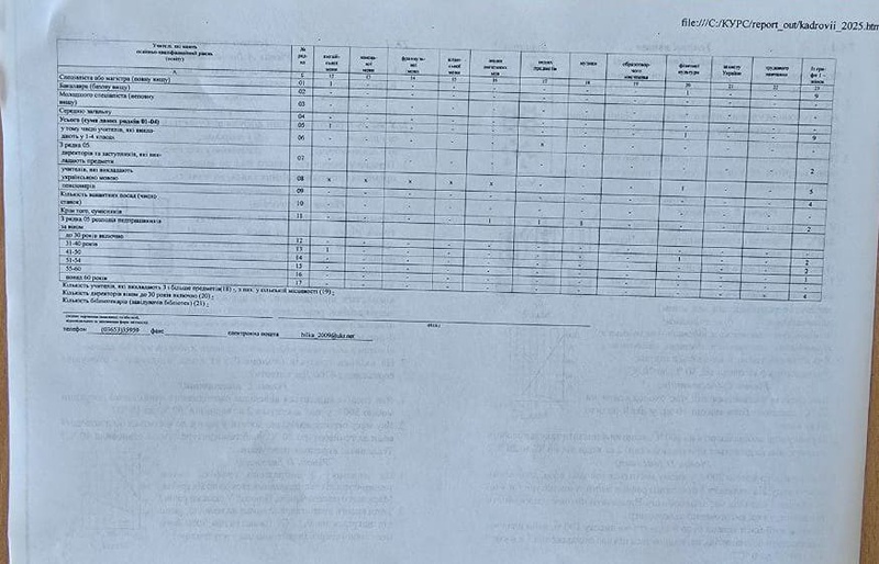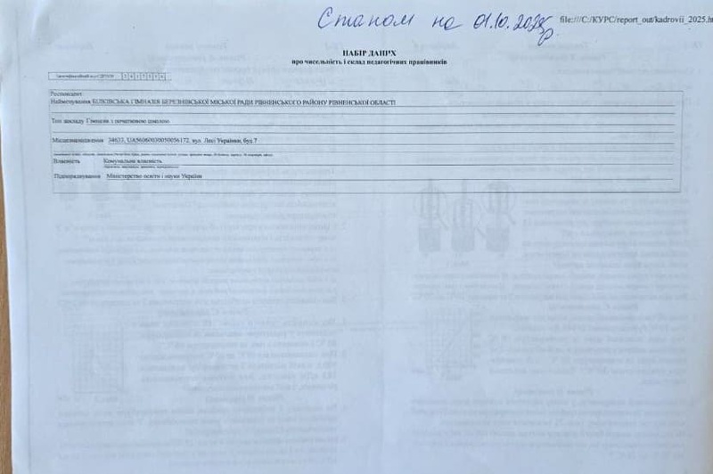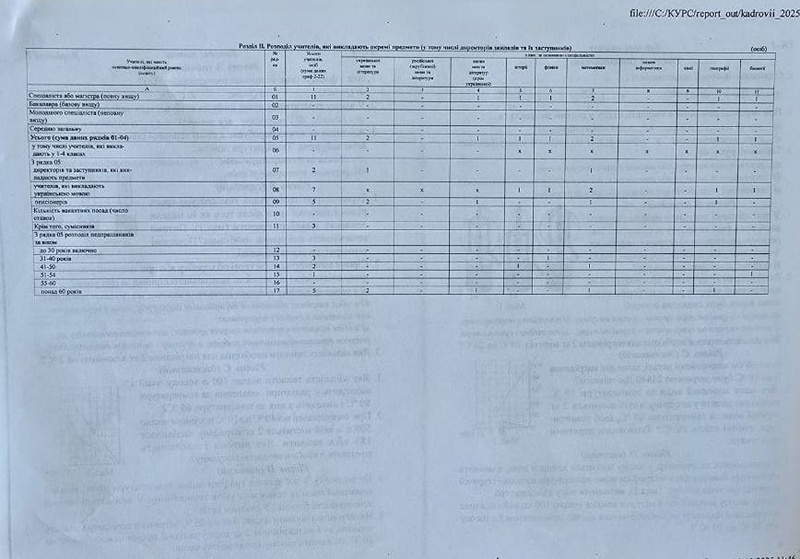Кадровий склад закладу освіти згідно з ліцензійними умовами
